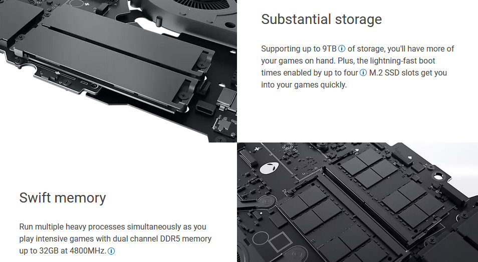 Avec 32 Go de RAM DDR5 et un SSD NVMe de 1 To, l’Alienware m16 R1 garantit des temps de chargement rapides et une capacité multitâche exceptionnelle.