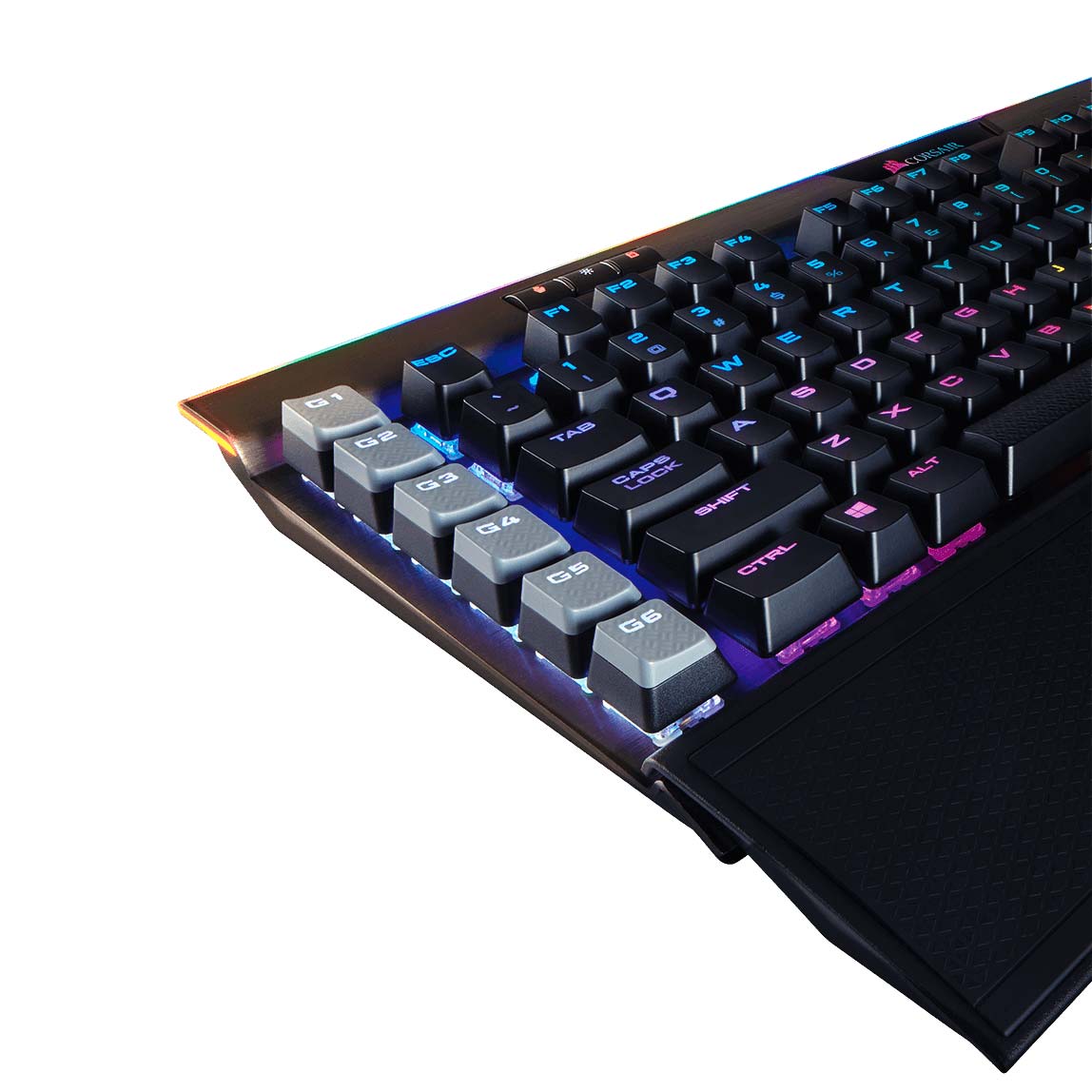 Le Corsair K95 RGB PLATINUM dispose de touches programmables et de macros dédiées pour une personnalisation avancée.