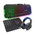 Ce pack complet comprend un clavier rétroéclairé, une souris gaming haute précision, un casque stéréo immersif, et un tapis de souris conçu pour des mouvements fluides.