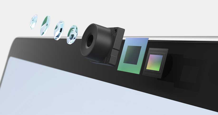 Dual Studio Mics, 2 W stereo speakers with Dolby® Atmos