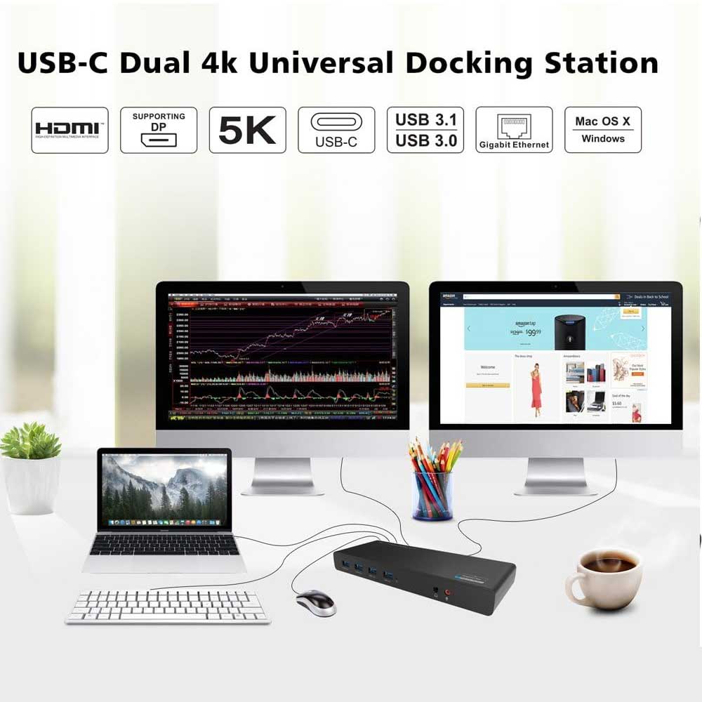 La WAVLINK Station d’accueil USB 3.0 / USB C | WL-UG69DK1-EU est l’accessoire ultime pour maximiser l’efficacité de votre espace de travail.